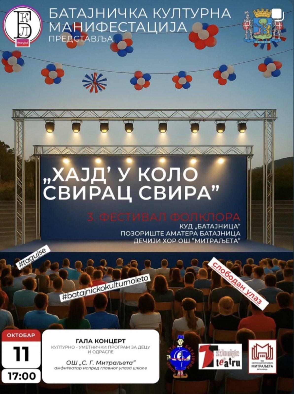 Ова репутација се градила из године у годину, а сада смо постали познати по широком репертоару и спремношћу за наступом. Професионално и стручно, колегиница Влатка Костић, професорка музичке културе, бира своје хористе. Овде се музика и певање доживљавају као креативност и задовољство, али и инспирација и мотивација. Зато вас позивамо да 11.10.2025. одслушате гала концерт нашег хора у оквиру 3. фестивала фолклора, под називом ,,Хајд’ у коло, свирац свира!“. Целокупно дешавање почиње у 17 часова испред школског амфитеатра.