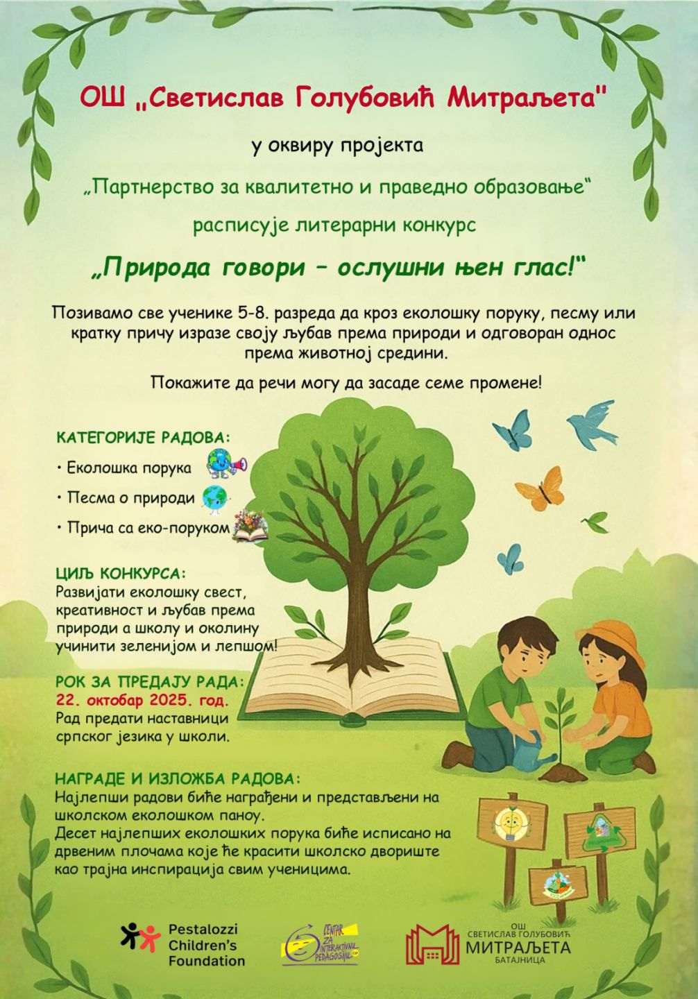 Ученици ће кроз еколошке поруке, песме и кратке приче имати прилику да изразе своју љубав према природи и покажу како речи могу да покрену позитивне промене.