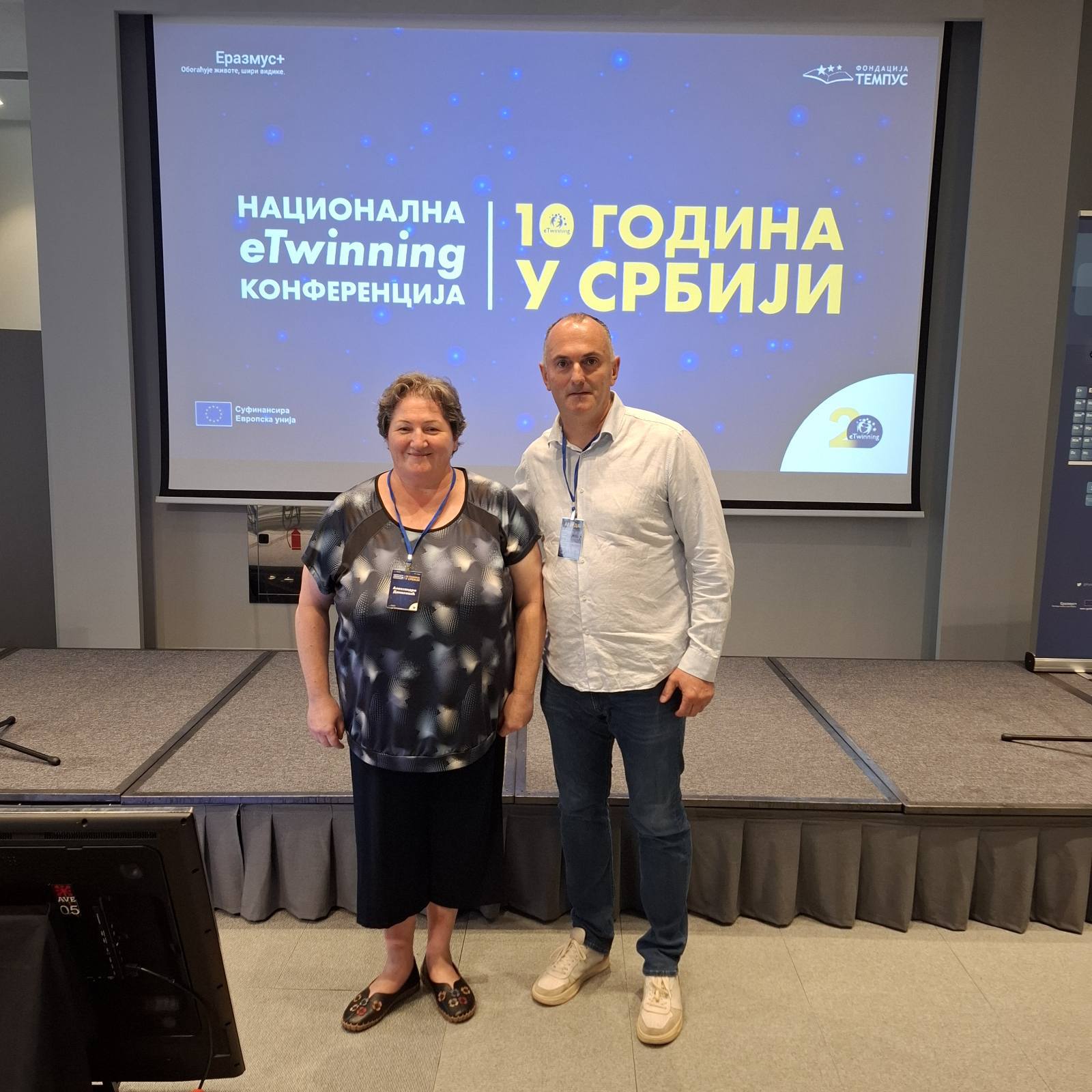 И наша школа слави, јер смо већ пуних 10 година активни чланови eTwinning заједнице наставника и ученика, посвећених сарадњи, иновацијама и квалитетном образовању. На Националној eTwinning конференцији нашу школу су представљали директор школе Игор Војновић и Александра Даниловић, наставница математике. Била је то прилика да се подсетимо како је све почело и на који начин се из године у годину ширила eTwinning заједница у Србији.