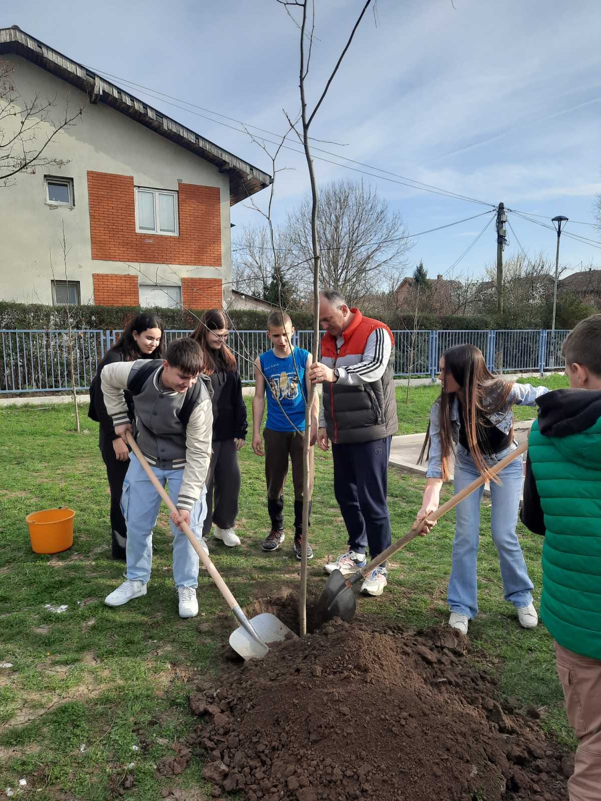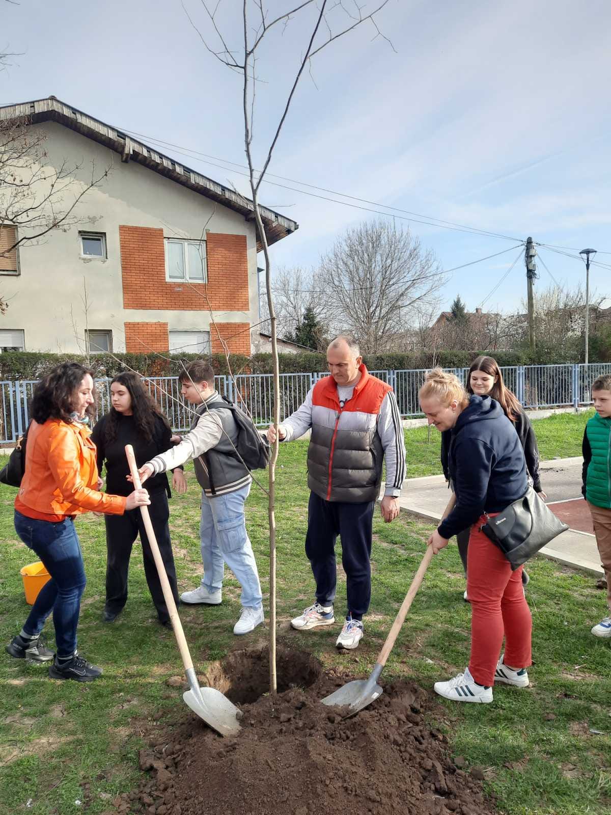 Међу посађеним дрвећем постоји Еразмус+ дрво које је нашло своје место у нашем школском дворишту. Дрво француско-српског пријатељства рашће и развијаће се, стајаће ту и бити сведок о везама које постају све чвршће.