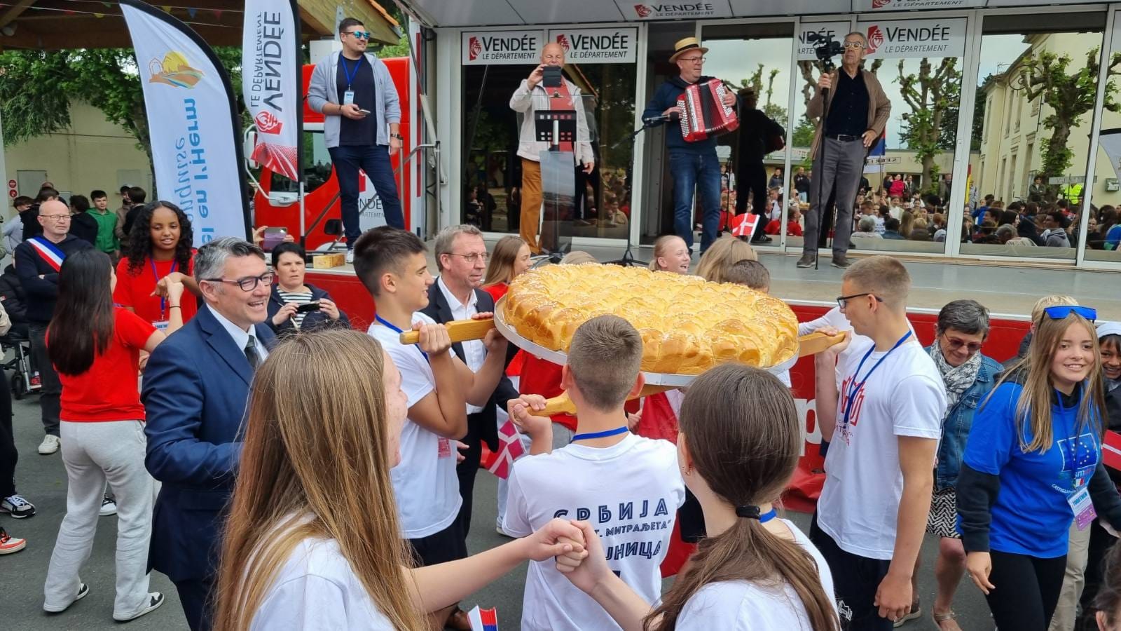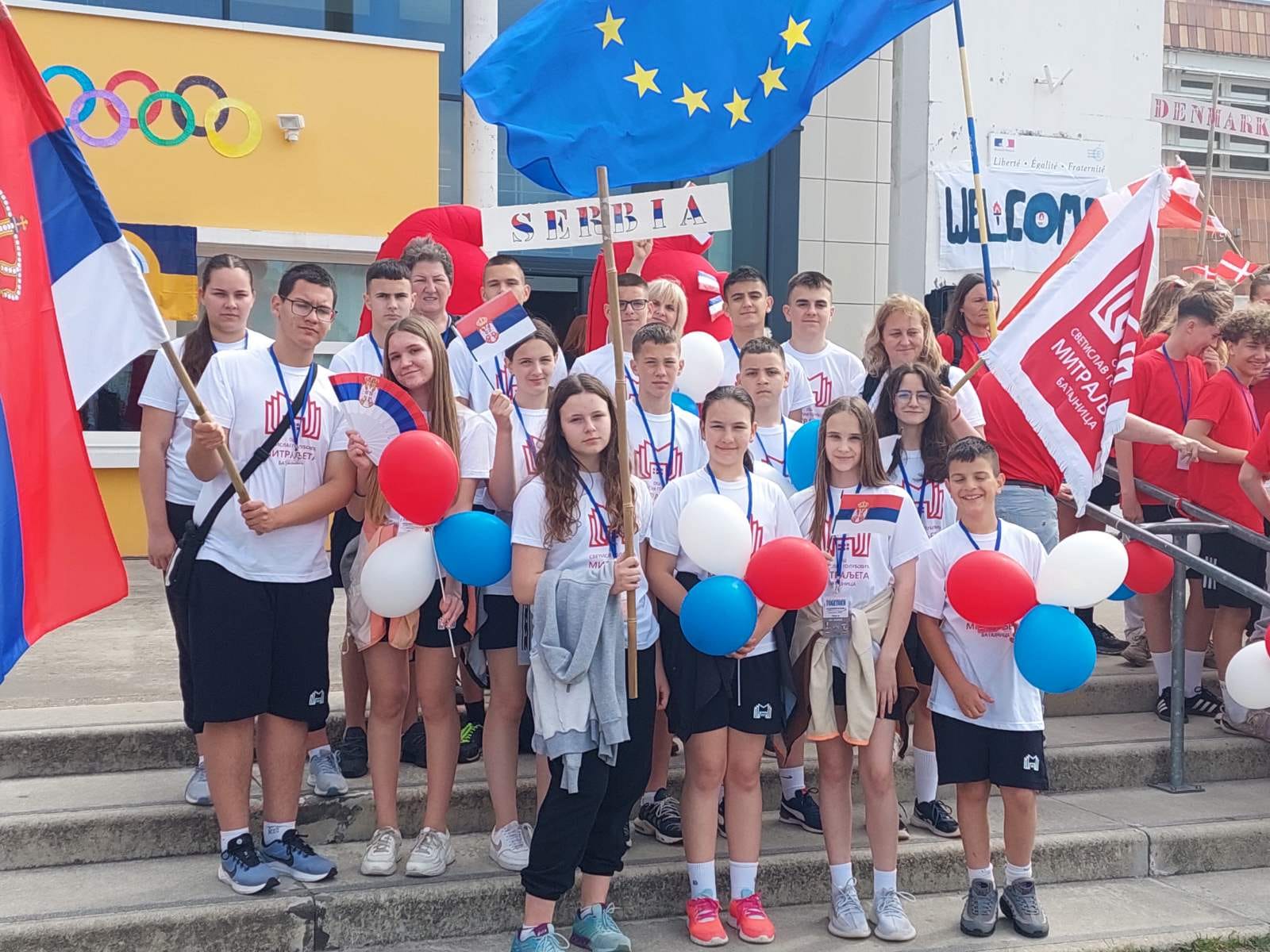 eTwinning/Еразмус+ пројекат „Let’s Live the Olympic Dream Together“ ове недеље је ушао у завршну фазу, а тај крај означава сусрет свих земаља учесница пројекта: Француске, Шпаније, Мађарске, Италије, Данске и Србије. У Француској, у месту Saint Michel en l’Herm, данас је била свечаност која је означила завршницу пројекта. Свака земља се представила на овој свечаности, а наш тим је био почашћен да носи заставу Србије и школе. ,,Митраљета“ је поносно прошла улицама овог градића, док су грађани махали заставицама земаља учесница. Ово су били јединствени моменти јер представљати своју земљу, а имате само толико година је животни тренутак за памћење.